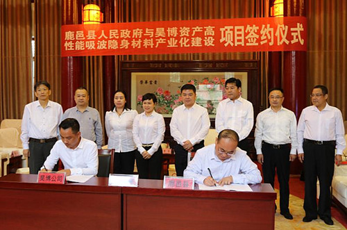 儀式上,閆家明首先代表縣四個班子領(lǐng)導(dǎo)和百萬鹿邑人民對前來參加簽約儀式的李佳一行表示歡迎和感謝。他說,昊博資產(chǎn)高性能吸波隱身材料產(chǎn)品屬于新型材料,又是軍民融合項(xiàng)目,該項(xiàng)目的落地就實(shí)現(xiàn)全縣產(chǎn)業(yè)轉(zhuǎn)型升級具有里程碑意義。他指出,近年來,鹿邑縣實(shí)施“產(chǎn)業(yè)興城、文化立縣”發(fā)展戰(zhàn)略,堅(jiān)持五區(qū)聯(lián)動、推進(jìn)項(xiàng)目建設(shè),今年共謀劃項(xiàng)目131個,總投資311億元,今年計(jì)劃總投資180億元,其中,列入省重點(diǎn)項(xiàng)目7個。經(jīng)過近年來的努力,鹿邑縣產(chǎn)業(yè)集聚區(qū)晉升為全省二星級,被評為“全省十快產(chǎn)業(yè)集聚區(qū)”。在與昊博資產(chǎn)洽談交流后,縣委縣政府十分重視,經(jīng)過多方考察,一致認(rèn)為該項(xiàng)目符合國家產(chǎn)業(yè)政策,項(xiàng)目簽約落地以后,縣委縣政府將成立建設(shè)指揮部,全力以赴支持項(xiàng)目建設(shè)、企業(yè)發(fā)展。