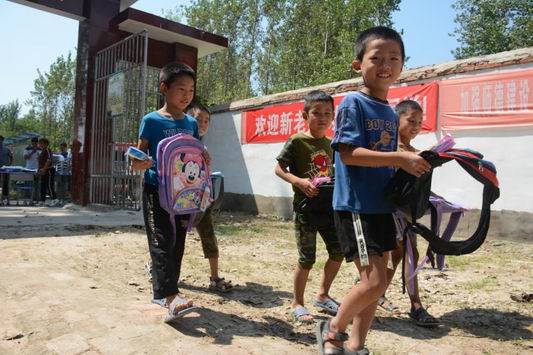8月27日上午11時(shí)許,商水縣平店鄉(xiāng)大朱莊村小學(xué)大 門外,突然停放一輛廂式貨車??吹接袉挝凰蛠砹恕伴_學(xué)禮”,學(xué)校老師和學(xué)生滿臉興奮 、七手八腳和來人一塊卸下一些嶄新的課桌凳、書包文具等學(xué)習(xí)辦公用品。