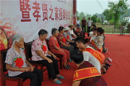 大會(huì)開始之前,來自該鄉(xiāng)20個(gè)行政村的廣場(chǎng)舞代表隊(duì)、戲曲代表隊(duì)、嗩吶代表隊(duì)先后出場(chǎng),訾秀玲一曲《黃土高坡》贏得全場(chǎng)觀眾雷鳴般掌聲。緊接著,好兒子、好媳婦代表上臺(tái)為自己的父母磕了3個(gè)響頭,以表達(dá)對(duì)父母養(yǎng)育之恩的感激之情,老人們臉上流露出激動(dòng)和幸福的淚水,現(xiàn)場(chǎng)掌聲經(jīng)久不息??h領(lǐng)導(dǎo)在主席臺(tái)上為36個(gè)孝賢之家授牌,并向獲獎(jiǎng)?wù)弑硎咀YR。據(jù)介紹,該鄉(xiāng)自開展孝善敬老接老人回家活動(dòng)以來,已有200多名獨(dú)居老人被兒子、媳婦接回家居住。為了表彰接老人回家的好兒子、好媳婦和孝賢之家,該鄉(xiāng)組織、策劃了這次大型活動(dòng)。