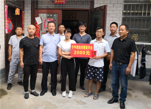 “感謝黨的關(guān)懷,感謝大家?guī)椭?,我們再也不用為學(xué)費擔心了。我們姐弟倆一定努力上學(xué),將來報效國家、回報社會?!?月5日,鄲城縣寧平鎮(zhèn)黨委書記徐汝敏、鎮(zhèn)長王樹勤將2000元助學(xué)款,送到該鎮(zhèn)王寨行政村貧困戶王海洋家,幫助其今年同時考上大學(xué)的一雙兒女入學(xué)無憂。據(jù)悉,這是繼鄲城團縣委、縣公安局、縣慈善總會之后的第四筆善款,王海洋及其兒女感恩不已。