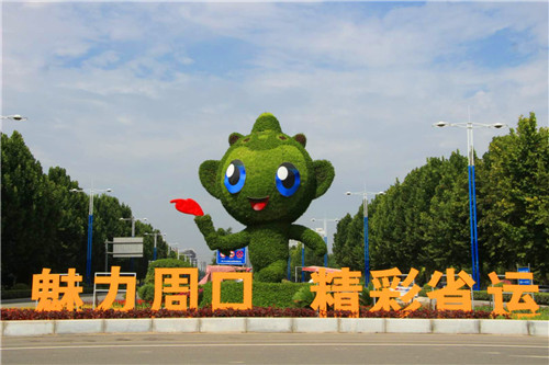 當日上午,記者在東新區(qū)周口大道與文昌大道交叉口看到,巨大的運動會吉祥物造型“泥娃”正在招手,向每一位路人致意?!镑攘χ芸冢适∵\”的口號立于泥娃兩側,引人注目。中心路口的轉盤花壇內已煥然一新,五顏六色的花朵正以嬌艷的姿態(tài),歡迎四海賓朋共聚周口。