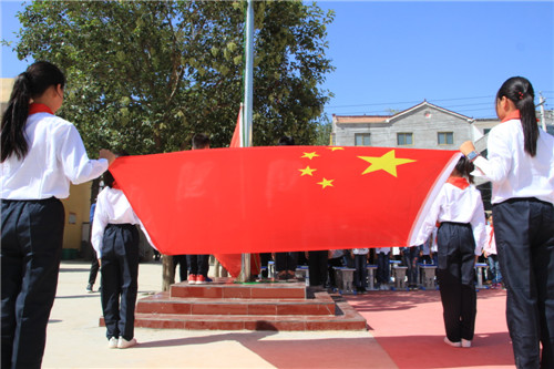 這是一面嶄新的五星紅旗,在藍(lán)天和驕陽(yáng)的映襯下鮮艷奪目,熠熠生輝。國(guó)慶前夕,周口市淮陽(yáng)縣白樓鎮(zhèn)大李小學(xué),孩子們聚集在一起,戴著同樣鮮艷的紅領(lǐng)巾,參加一場(chǎng)莊重的升旗儀式。在他們看來(lái),這是一種愛(ài)國(guó)情懷的表達(dá),也是對(duì)祖國(guó)母親最好的祝福。