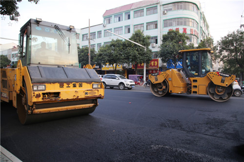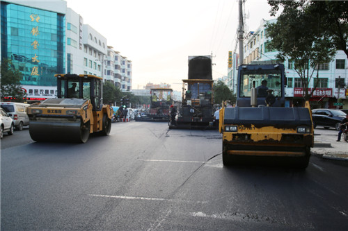 “為確保工程安全施工,我們抽調(diào)警力跟著工段加強(qiáng)執(zhí)勤,保證工程進(jìn)度及過往車輛及行人有序通行……”記者當(dāng)天在現(xiàn)場看到,該路段路面第二遍細(xì)石子正在鋪設(shè),熱氣騰騰的瀝青石子拌料被大型機(jī)械平整后,三臺軋路機(jī)緊跟著軋平;為不影響工程進(jìn)度,每個路口都有交警在指揮著過往車輛有序繞行。