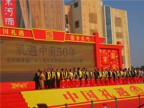 金秋十月,五谷豐登,神州大地,秋釀飄香。在這美好的季節(jié),地處老子故里的河南宋河酒業(yè)迎來了她五十歲華誕。10月30日,“禮遇中國五十年——宋河酒業(yè)建廠五十周年慶典暨2018封壇大典”在鹿邑宋河酒業(yè)生產(chǎn)園區(qū)隆重開幕,省市縣領(lǐng)導(dǎo)、行業(yè)專家與來自全國各地的經(jīng)銷商、供應(yīng)商以及全國知名品牌的白酒企業(yè)近1500人共同見證這一時(shí)刻,見證在豫酒轉(zhuǎn)型升級(jí)政策推動(dòng)下、宋河酒業(yè)的振興之路。