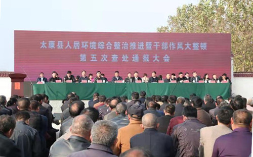 11月9日,太康縣人居環(huán)境綜合整治推進會暨干部作風(fēng)整頓第五次查處通報大會在該縣城郊鄉(xiāng)池莊行政村召開。王國璽、李錫勇、王程清、張思民、王建林等縣四個班子領(lǐng)導(dǎo)、市脫貧攻堅第四督查巡查組組長李煒和縣副處級以上領(lǐng)導(dǎo)及該縣縣直、各鄉(xiāng)鎮(zhèn)負責人參加會議。會議由縣委副書記、政法委書記王程清主持??h委書記王國璽指出,人居環(huán)境綜合整治是鄉(xiāng)村振興的基礎(chǔ)工程、是脫貧摘帽的形象工程、是環(huán)保攻堅的保障工程、是農(nóng)村生活的清潔工程、是執(zhí)政能力的標志工程,必須抓好抓實。