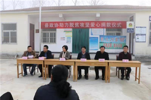 11月13日,在扶溝縣桐丘街道辦事處小胡行政村村委院內(nèi),縣政協(xié)副主席郝寶杰將市、縣政協(xié)委員們捐贈(zèng)的2萬(wàn)元錢(qián)交到小胡、東五村黨支部書(shū)記手中,也將政協(xié)委員對(duì)脫貧攻堅(jiān)事業(yè)的愛(ài)心傳導(dǎo)到貧困戶的心中。