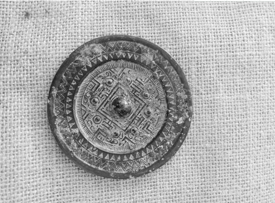 據(jù)悉,這批墓葬因埋藏較淺,均遭到嚴(yán)重破壞,出土文物大部分為器物陶片。從殘片上看主要有陶盆、耳杯、陶案、陶樽、陶罐、陶甕、銅錢、銅鏡等,其中八乳規(guī)矩鏡是這次出土的珍貴文物。