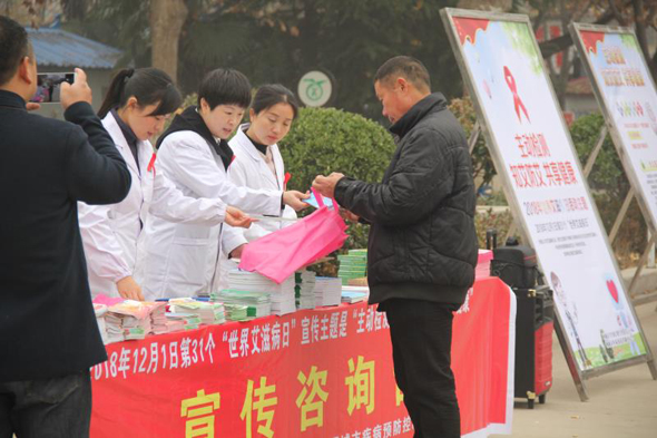 11月30日上午,由項(xiàng)城市衛(wèi)生計(jì)生委組織,來(lái)自項(xiàng)城市疾控中心、市第一人民醫(yī)院、市中醫(yī)院、市婦幼保健院及市內(nèi)的其它十余家醫(yī)療機(jī)構(gòu),共同在該市人民公園舉行第31個(gè)“主動(dòng)檢測(cè),知艾防艾,共享健康”的“世界艾滋病日”主題宣傳活動(dòng)?;顒?dòng)現(xiàn)場(chǎng),醫(yī)護(hù)人員共向群眾發(fā)放宣傳資料1800余冊(cè)(種),接受230多人次的咨詢服務(wù),大力宣傳倡導(dǎo)建立文明健康的生活方式,并希望大家都能正視艾滋、關(guān)注艾滋、預(yù)防艾滋。