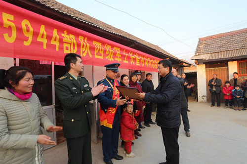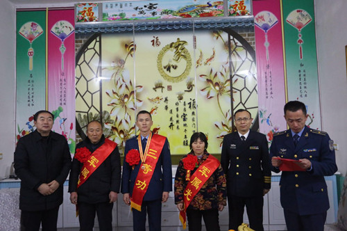 軍地聯(lián)手鑼鼓喧天送喜報(bào),功臣家人披紅戴花受尊崇??战当娔巢渴翘丶?jí)英雄黃繼光生前所在部隊(duì),今年以來,先后有4名周口籍官兵在各類重大演訓(xùn)任務(wù)中立功受獎(jiǎng),為了使軍人的榮譽(yù)向官兵家庭拓展、向全社會(huì)輻射,該部決定開展“功耀門楣送喜報(bào)進(jìn)家門”活動(dòng),利用12月14日、15日兩天時(shí)間,選派專人成立“報(bào)喜”小分隊(duì),為我市4名官兵家庭送去立功喜報(bào)和慰問金。