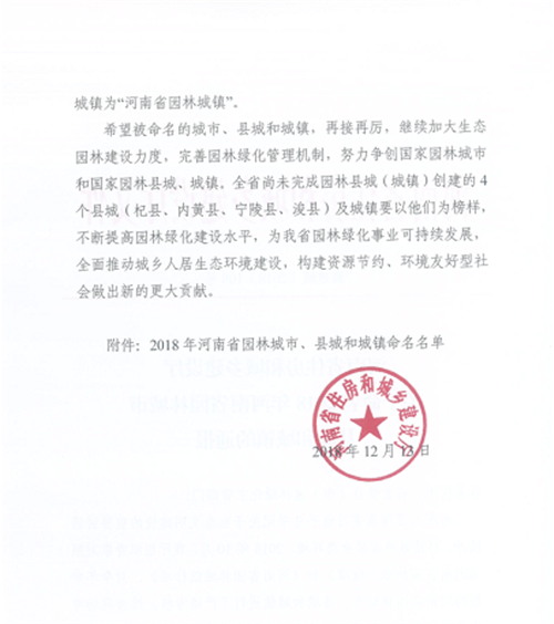 12月17日,記者從太康縣住房和城鄉(xiāng)建設(shè)局獲悉:河南省住房和城鄉(xiāng)建設(shè)廳辦公室日前專門(mén)下發(fā)文件,公布了河南省園林城市、縣城和城鎮(zhèn)擬命名名單。太康縣和西華縣成功入選2018年河南省園林縣城。