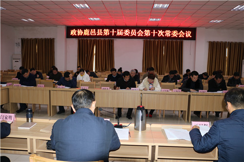 12月19日上午,政協(xié)鹿邑縣第十屆委員會第十次常務(wù)會議在縣委黨校五樓會議室召開??h政協(xié)主席雷申、副主席丁顯輝、李蘭明、宋克言等出席會議??h委常委、統(tǒng)戰(zhàn)部長閆家明列席會議。41名政協(xié)常委參加會議。