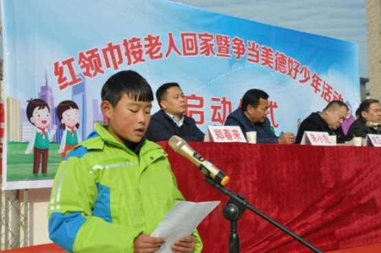 12月29日下午,在商水縣姚集鎮(zhèn)舉行的“紅領巾接老人回家暨爭當美德好少年”活動 啟動儀式上,姚集鎮(zhèn)盧廟小學六年級學生張吉慶用幼稚童音朗誦的《用愛接爺爺奶奶 回家》,感動了在場的來自各鄉(xiāng)鎮(zhèn)的數(shù)百名鄉(xiāng)村干部。“孩子講的好,我們一定配合 鄉(xiāng)政府把獨居老人戶清零工作做好做實,讓老人們年年過暖冬?!睖f鄉(xiāng)中心校長戚 二中會后告訴記者。
