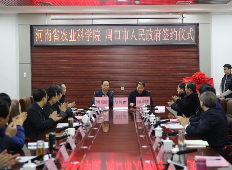 1月9日,河南省農(nóng)業(yè)科學院與周口市人民政府簽訂全面戰(zhàn)略合作協(xié)議暨河南省農(nóng)業(yè)科學院鄲城分院揭牌儀式在鄲城舉行,中國工程院院士、省農(nóng)科院院長張新友,省農(nóng)科院副院長衛(wèi)文星,副市長張廣東,以及鄲城縣委書記羅文閣、縣長李全林等相關(guān)負責同志參加儀式。