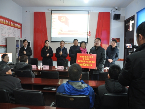 作為河南省人民檢察院的直屬學(xué)校,河南檢察職業(yè)學(xué)院也積極參與瓦房莊的脫貧攻堅(jiān)工作。在當(dāng)日舉行的河南檢察職業(yè)學(xué)院文化扶貧啟動(dòng)儀式上,他們不僅送來了精彩的黨課,還為該村小學(xué)捐贈(zèng)現(xiàn)金5萬元,用于村小學(xué)操場硬化,改善辦學(xué)條件。