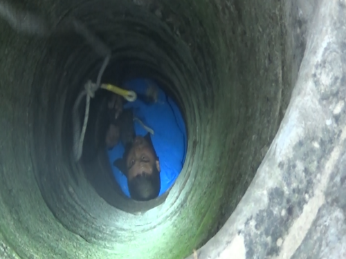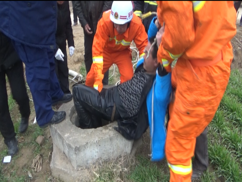 1月14日早上8時(shí)許,接到群眾報(bào)警后,淮陽(yáng)縣消防大隊(duì)立即出動(dòng)一輛搶險(xiǎn)救援車(chē)、一輛水罐車(chē)及8名指戰(zhàn)員趕赴救援。到達(dá)現(xiàn)場(chǎng)后,民警發(fā)現(xiàn)男子掉進(jìn)一個(gè)沒(méi)有蓋的澆灌井內(nèi),井深約10米,井口直徑大約20公分。