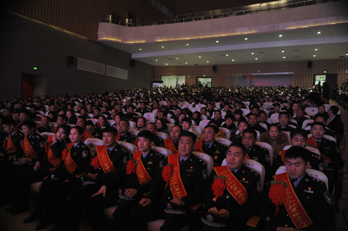 熠熠金盾耀新春,崢嶸歲月訴衷腸。1月24日晚,鹿邑縣文化中心大會堂里座無虛席,鹿邑縣公安部門在這里隆重舉行“2018忠誠記憶”職業(yè)榮譽頒獎儀式??h領導李剛、李國際、雷申、侯自峰、陳巍、何新敏、齊梅英等和公安民警、警屬代表等共千余觀眾在現場共同見證。