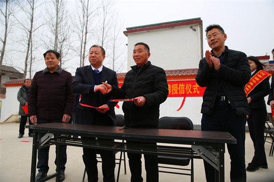 崗趙村是周口市行政服務(wù)中心幫扶的貧困村。去年11月份,駐村第一書記李文杰得知西華廈農(nóng)商村鎮(zhèn)銀行已開始在村一級評定設(shè)立“鄉(xiāng)村振興示范點(diǎn)”,立即與該行負(fù)責(zé)人取得聯(lián)系、積極溝通。銀行方面經(jīng)過認(rèn)真考察,最終確定在崗趙“設(shè)點(diǎn)”。25日在崗趙村部舉行的授牌授信儀式上,西華縣人民銀行有關(guān)負(fù)責(zé)人為崗趙村授予“鄉(xiāng)村振興示范點(diǎn)”牌匾,西華廈農(nóng)商村鎮(zhèn)銀行負(fù)責(zé)人與崗趙村負(fù)責(zé)人簽訂了授信協(xié)議書。周口市行政服務(wù)中心和葉埠口鄉(xiāng)政府負(fù)責(zé)人都熱情致辭,百余名村民代表見證了這一激動(dòng)人心的時(shí)刻。準(zhǔn)備做早餐生意的村民趙合成說:“咱農(nóng)民貸款也不用再跑冤枉路、花冤枉錢,這個(gè)‘點(diǎn)’設(shè)得真中!”