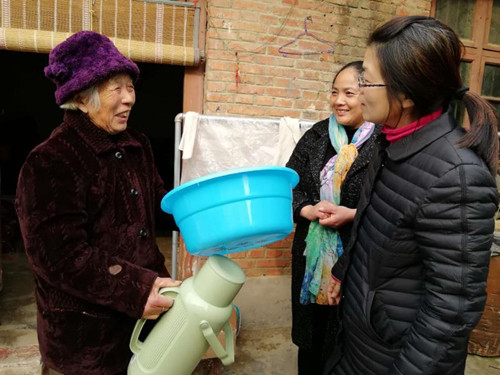 一個水瓶、一幅年畫足以溫暖一個村莊……1月26日,淮陽縣婦聯(lián)迅速落實縣委、縣政府“大走訪、大宣傳、大慰問”工作部署,駐村工作隊長張健帶領第一書記、工作隊員和村兩委干部對大連鄉(xiāng)代廟村挨門逐戶進行走訪慰問,把黨和政府的關(guān)懷送到尋常百姓家。