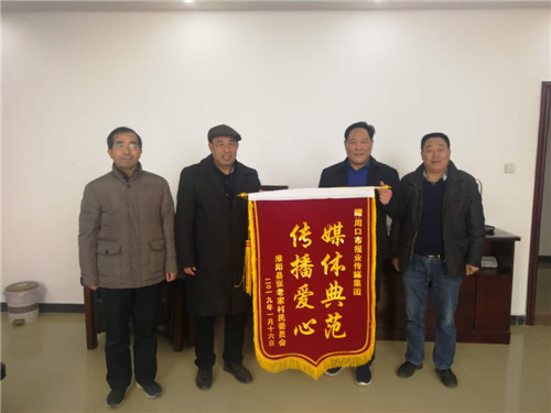 “傳播愛心,媒體典范”“為民解憂愁,心系千萬家”。1月25日上午,淮陽縣劉振屯鄉(xiāng)張老家行政村村支書張紀全專程趕到周口,給周口報業(yè)傳媒集團、周口市啄木鳥志愿者服務(wù)工作委員會送來兩面錦旗,表達他們的感激之情(如圖)。