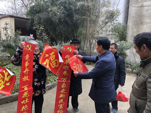據(jù)了解,當天下午時莊村黨支部訂制的3000多套春聯(lián),免費贈給448戶村民。記者看到,這些春聯(lián)的內容都是承載著黨和政府的關懷,有的是歌頌改革開放的,有的是幸福報黨恩的。該村村民朱在靈領到春聯(lián)后立刻把春聯(lián)拿回家,他將門頭擦干凈后把春聯(lián)貼了上去。在門口懸掛著的國旗的襯托下,顯得格外喜慶?!按謇锩赓M發(fā)這種帶黨徽的春聯(lián)已經(jīng)第三年了,這種春聯(lián)傳遞了黨的好聲音,推動了群眾對黨的擁護,現(xiàn)在村民的精神面貌也貌煥然一新?!敝煸陟`高興地說。
