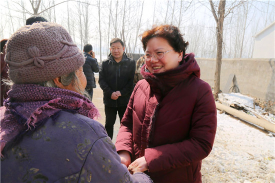 2018年5月11日,張穎波在看望大新鎮(zhèn)陳樓村的困難群眾吳鳳蓮時(shí),曾對(duì)她說過一句話,“等你新房蓋好,我再來看你?!保罚稓q的吳鳳蓮把這句話牢牢地記在了心里。一見張穎波的面,拉著手留著淚連聲說:“俺家房早就蓋好了,就一直盼著恁來。我知道恁忙,可就想讓恁看看俺的房……”老人和一位患病的兒子一起生活,去年5月份張穎波來時(shí),她家正因“危房清零”活動(dòng)而扒掉舊房蓋新房。張穎波當(dāng)時(shí)還特意滿足了老人的一個(gè)愿望,安排村干部為她家房?jī)?nèi)專門壘個(gè)隔斷?!拔遥罚岸嗔?,從來沒住過這么好的房、從來沒過過這么好的日子!”新建的三間磚瓦房、一間配套齊全的廚房和壘好的院墻讓老人感慨不已,發(fā)自肺腑地說著黨和政府的好?!袄先思遥医裉炀褪窍肟纯捶孔痈脑斓脑鯓?,也給你拜個(gè)早年?!睆埛f波拉著吳鳳蓮老人的手說:“房子蓋好了,也算了了你的一個(gè)心愿,有黨和政府的幫助,日子會(huì)越來越好。你要照顧好自己和孩子,有啥困難就找村里干部。”