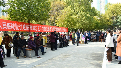 運(yùn)動(dòng)會(huì)共設(shè)四個(gè)項(xiàng)目:你演我猜、踩氣球、搶凳子和蒙眼擊鼓。講究默契的你演我猜,團(tuán)隊(duì)協(xié)作的踩氣球,笑料百出的蒙眼擊鼓,讓整個(gè)賽場(chǎng)充滿(mǎn)著歡聲笑語(yǔ)。激烈的比賽也引來(lái)了患者及家屬的圍觀,他們也被這歡樂(lè)的氣氛感染,臉上綻放出了笑容。在競(jìng)爭(zhēng)激烈的搶凳子比賽中,主持人加入了知識(shí)問(wèn)答環(huán)節(jié),沒(méi)搶到凳子的要回答主持人提出的扶貧措施問(wèn)題,隨著一個(gè)個(gè)參賽者被淘汰,醫(yī)院的各項(xiàng)扶貧措施也給圍觀者們留下了深刻的印象。