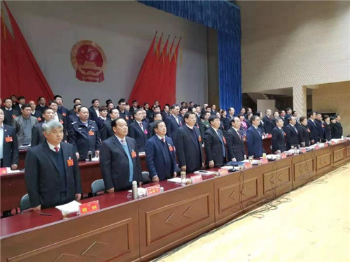 上午8點(diǎn)30分,大會(huì)主席團(tuán)常務(wù)主席皇甫立新宣布大會(huì)開幕,與會(huì)人員全體起立,會(huì)場(chǎng)響起雄壯的國(guó)歌聲。
