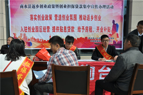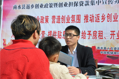 3月18日上午,商水縣人社局和縣郵儲銀行聯(lián)合在省級農(nóng)民工返鄉(xiāng)創(chuàng)業(yè)示范園區(qū)周口汽配城開展創(chuàng)業(yè)補貼、創(chuàng)業(yè)擔(dān)保貸款優(yōu)惠政策宣傳。