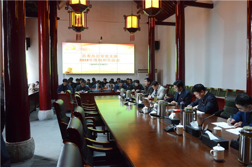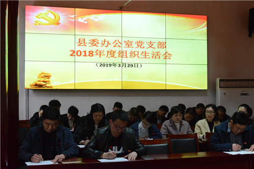 3月29日下午,鹿邑縣委辦公室黨支部召開2018年度組織生活會并開展民主評議黨員活動??h委書記梁建松,縣委常委、辦公室主任宋濤以一名普通黨員身份參加會議??h委辦公室機關(guān)全體同志參加會議。
