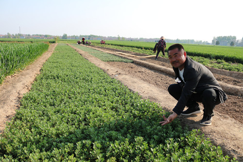 走近張辛行政村金絲皇菊種植基地,映入眼簾的是一片春意盎然的綠色,一株株金絲皇菊幼苗正村民的精心呵護(hù)下茁壯成長(zhǎng),為他們帶來(lái)了新的希望。高建民是宋河鎮(zhèn)張辛行政村的黨支部書記,同時(shí)也是全村率先深耕菊花深加工的能人。他說(shuō),菊花種植有賣苗、采集鮮花和深加工制售花茶多種贏利模式,現(xiàn)在正是各種菊花育苗銷售的季節(jié),行情好的時(shí)候,每株培育好的菊花幼苗可以賣到三四毛錢,經(jīng)過(guò)烘干的皇菊每公斤可以賣到300元左右,按每畝地產(chǎn)出150公斤干花算,就是4.5萬(wàn)元,再加上賣幼苗的錢,每年每畝皇菊的毛利潤(rùn)接近5萬(wàn)元。
