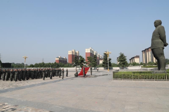 “我是中國民兵,我宣誓:服從中國共產(chǎn)黨領(lǐng)導(dǎo),積極參加國家建設(shè),忠實履行國防義務(wù),遵紀(jì)守法,服從命令,忠于職守,努力學(xué)習(xí)……”當(dāng)日上午,在吉鴻昌將軍塑像前,太康縣全體基干民兵集體重溫了民兵誓詞。