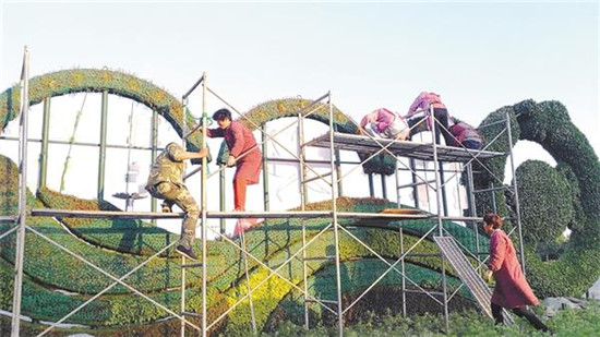 5月21日6時(shí)許,周口市中心城區(qū)文昌大道與周口大道交叉口東側(cè)的街頭游園內(nèi),工人們用花草布置景觀造型。據(jù)悉,5月20日下午,我市召開(kāi)創(chuàng)建國(guó)家衛(wèi)生城市攻堅(jiān)戰(zhàn)誓師大會(huì)。會(huì)議要求,集中全力,克難攻堅(jiān),利用最后十多天時(shí)間,做好迎接省“創(chuàng)衛(wèi)”暗訪組檢查的全部準(zhǔn)備,堅(jiān)決拿下“創(chuàng)衛(wèi)”資格和路條。記者 關(guān)秋麗 攝