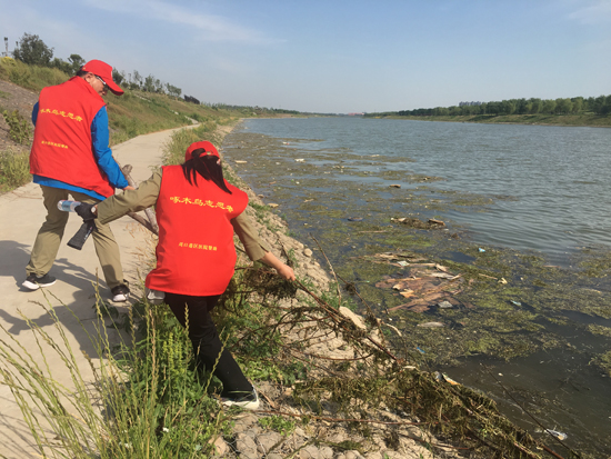 雖然當天氣溫創(chuàng)下我市入夏以來的新高,但志愿者們?nèi)詼蕰r來到集合地點開展巡訪活動。活動開始后,志愿者們來到了沙潁河風景區(qū)的鐵路風情廣場東側(cè),發(fā)現(xiàn)這里的一處電力井蓋破損嚴重。沒過多久,志愿者們發(fā)現(xiàn)附近河段中有許多水草和漂浮物。由于河邊濕滑,又沒有清理工具,志愿者們在確保自身安全的前提下,將部分漂浮物撈到岸邊并放進了垃圾箱中。由于水草和漂浮物太多,志愿者們的努力顯得杯水車薪。