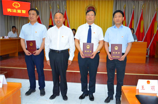 會議書面學習了栗戰(zhàn)書委員長在全國人大常委會水污染防治法執(zhí)法檢查組第一次全體會議上的講話,聽取審議了太康縣人大常委會執(zhí)法檢查組關于檢查水污染防治“一法一條例”貫徹實施情況的報告,聽取審議了縣城市管理局、縣農業(yè)農村局、縣文化廣電和旅游局、縣應急管理局主要負責人述職報告并進行滿意度測評。會議根據縣人民政府的提請,依法免去卜迎濤、張國慶兩位同志的太康縣人民政府副縣長職務,任命耿黨恩、李煒、孟濤三位同志為太康縣人民政府副縣長,被任命的同志進行了憲法宣誓,張思民為被任命同志頒發(fā)了任命書。