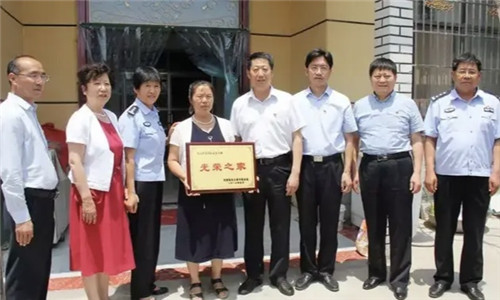 6月25日,河南省見義勇為基金會(huì)副理事長劉玉虎、秘書長鄭獻(xiàn)春一行來到鄲城縣見義勇為模范稱號(hào)的王軍生家中,劉玉虎親自將“光榮之家”的牌匾送到王軍生的愛人韓香手中。周口市公安局黨委委員、政治部主任郭冰,政治部副主任李亞鵬,基金會(huì)周口分會(huì)秘書長王鑫,鄲城縣委副書記、政法委書記崔衛(wèi)國,鄲城縣公安局政委趙紅建,鄲城縣公安局黨委委員、政工室主任李越,鄲城縣洺南辦事處書記張杰等參加了授牌。