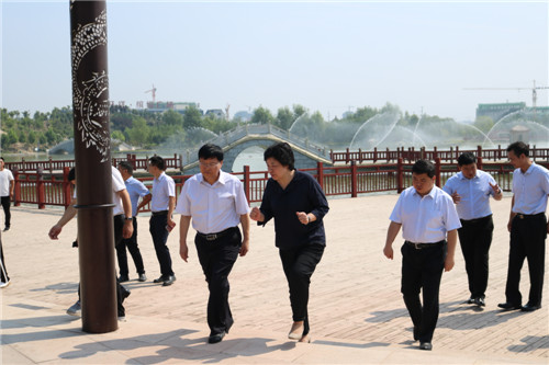 路云一行先后來到上清湖公園、閆溝河公園、陳摶公園提升暨古城墻恢復項目現(xiàn)場以及老子學院、渦河濕地公園等地進行實地察看,對鹿邑縣的國土綠化、“百城提質(zhì)建設工程”、城市規(guī)劃建設及精細化管理等相關工作給予充分肯定。