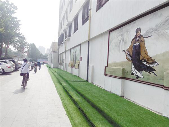 記者通過(guò)走訪發(fā)現(xiàn),與周口六一路小學(xué)門(mén)前的育新路一樣,我市不少小街道兩側(cè)有了文化墻。這些文化墻內(nèi)容新穎,表現(xiàn)形式多樣,美感十足。