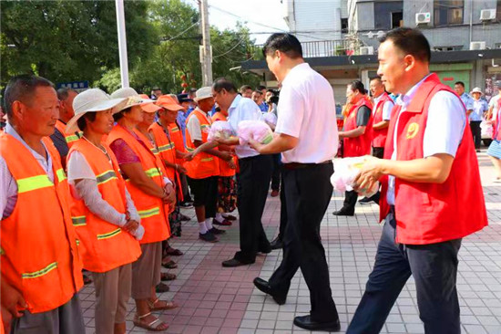 張建中說(shuō),爭(zhēng)創(chuàng)省級(jí)文明城市是縣委、縣政府的重要決策,也是全縣人民的共同期盼。環(huán)衛(wèi)工人和城管工作者既是城市的美容師,更是“創(chuàng)城”的主力軍,在大家的辛勤努力下,城市面貌有了可喜的變化。希望對(duì)照相關(guān)要求,繼續(xù)發(fā)揚(yáng)吃苦耐勞、默默奉獻(xiàn)精神,為創(chuàng)建文明城市、共建美麗扶溝再立新功。