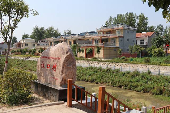 天藍(lán)水清,綠樹成蔭,九曲橋旁邊的岸上開滿了格?;ǎ粫r(shí)有水鳥從水面掠過,這不是某個(gè)大城市的濕地公園。這是位口村的“水上公園,”如今已經(jīng)成了村里的標(biāo)志性建筑。夜幕降臨,村民們?nèi)齼蓛删墼诤舆吷⒉健⒊藳??!庇腥司幜诵∏焊裆;▋合蜿栭_,歡迎您到位口來;扶貧攻堅(jiān)結(jié)碩果,村民感恩黨關(guān)懷……