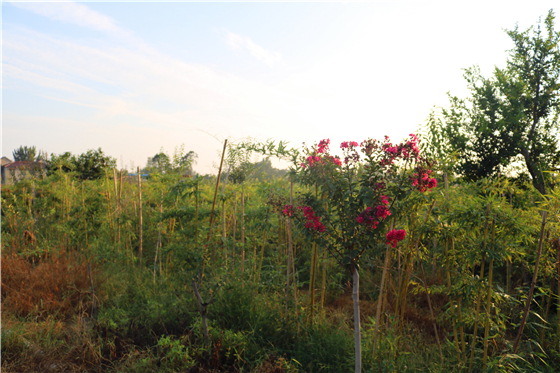 米杰是第一個嘗試吃螃蟹的田園綜合體追夢人,這個在外打拼多年事業(yè)有成的豫東漢子,放棄了原本舒適的城市生活,于去年初回到老家大米行政村,通過流轉(zhuǎn)連片成方土地,栽植紫薇、紅梅、丁香、臘梅、石楠、海棠、櫻花、碧桃、無花果、蘋果、藍(lán)莓、石榴、冬棗等各類喬木果樹,并配套完成地下供排水管網(wǎng)和線纜埋設(shè)等現(xiàn)代化農(nóng)田設(shè)施,和鎮(zhèn)里已經(jīng)形成的萬畝中藥材基地連成一片,形成規(guī)模效應(yīng)。朝著他心目中的“一田花、一片林、一灣水、一首詩、一幅畫”——惠濟(jì)灣田園旅游新高地闊步前行。