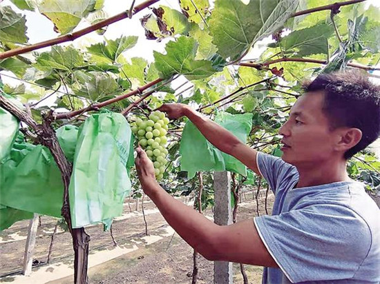 在楊樓村,轉(zhuǎn)業(yè)返鄉(xiāng)的李玉柱在土地上也做出了大文章。李玉柱在部隊(duì)服役15年,本可按政策安排工作。但是,他有著強(qiáng)烈的創(chuàng)業(yè)熱情。三年前,在鄉(xiāng)村兩級(jí)組織的支持下,他租用村集體土地,投入100多萬元搞葡萄種植。目前,葡萄進(jìn)入豐產(chǎn)期,李玉柱每年都可實(shí)現(xiàn)收入20多萬元。