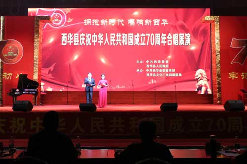 9月23日和24日晚,由西華縣委、縣政府主辦,縣委宣傳部、縣文化廣電和旅游局承辦的“擁抱新時(shí)代·唱響新西華”慶祝中華人民共和國成立70周年合唱展演預(yù)賽在該縣體育館舉行,林鴻嘉、程維崢、周曉燕、郭峰、陳秉生、楊鳳臣、張曉偉、趙增先等縣處級(jí)領(lǐng)導(dǎo)干部與來自全縣各屆的群眾共同觀看演出。