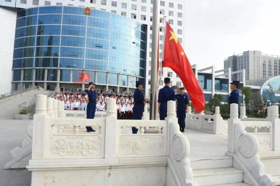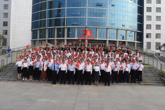 隨后,開發(fā)區(qū)黨委班子成員、開發(fā)區(qū)中層干部、普通黨員代表、教師黨員代表、消防隊員等200多人手執(zhí)國旗,齊聲合唱《我和我的祖國》《團結(jié)就是力量》等歌曲,展示開發(fā)區(qū)人昂揚向上的精神風(fēng)貌,熱烈慶祝新中國成立70周年。