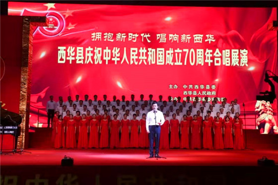 當晚,一場由西華縣委、縣政府主辦,縣委宣傳部和縣文化廣電和旅游局承辦的慶祝中華人民共和國成立七十周年合唱展演決賽拉開了該縣慶祝國慶活動的序幕。