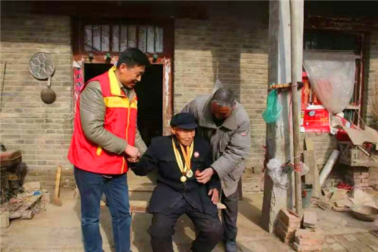 趙隆成是衡霞光走訪的第一名老兵。老人1925年出生,高賢鄉(xiāng)聚臺(tái)崗行政村人,16歲加入中國共產(chǎn)黨,1943年開封戰(zhàn)役中腳跟受傷,行動(dòng)不便?!肮伯a(chǎn)黨好,共產(chǎn)黨的干部們好啊。” 得知來訪, 老人拉住衡霞光的手激動(dòng)地說。