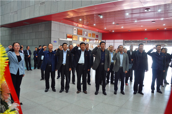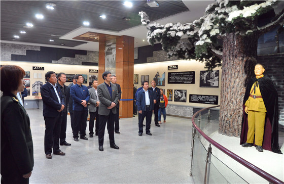 田林、張峰、李德來、孫培忠等首先來到吉鴻昌銅像廣場,瞻仰英雄英姿,追憶將軍的浩然正氣和愛國情懷。步入展 廳,縣委常委、組織部長劉和輝帶領參觀人員重溫入黨誓詞。