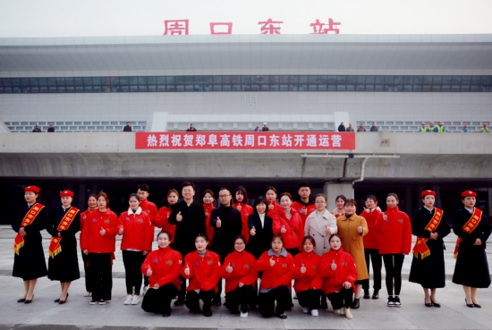 為慶祝鄭阜高鐵首發(fā),同時(shí)給乘客營造一個(gè)溫馨舒適的乘車環(huán)境,提升城市溫度,12月1日,在團(tuán)市委的組織下,來自周口職業(yè)技術(shù)學(xué)院的80名青年志愿者聚集在周口東站,開展志愿服務(wù)活動(dòng)。記者在現(xiàn)場看到,志愿者身穿統(tǒng)一服裝,分布在站前廣場、售票廳、進(jìn)站口、候車廳的各個(gè)角落,他們有的幫助乘客取票;有的引導(dǎo)乘客,幫助乘客進(jìn)站;有的則幫助車站工作人員分散客流量等。志愿者們積極熱情的工作態(tài)度,得到了廣大乘客的好評(píng)。