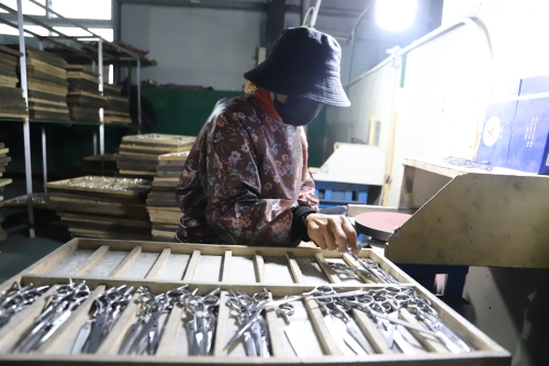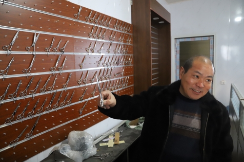 “我也是從小就外出,一直在江蘇蘇州發(fā)展,做刀剪十幾年了?,F(xiàn)在家鄉(xiāng)環(huán)境好,回來發(fā)展比在南方還有前途?!苯衲?9歲的陳政治老家是虎崗鄉(xiāng)陳莊村。被虎崗鄉(xiāng)黨委政府的誠意所感動,他很樂意回鄉(xiāng)發(fā)展,因為房租價格低、務(wù)工人員穩(wěn)定,營商環(huán)境又好,所以他帶著自己的外甥楊亞杰和技術(shù)團隊回到老家鄲城,還能助力家鄉(xiāng)經(jīng)濟發(fā)展。陳政治說,他的廠子所生產(chǎn)的東升、jack、亞寶等品牌刀剪全部銷往全國高檔理發(fā)店,產(chǎn)品供不應(yīng)求。像這樣的高檔刀剪生產(chǎn)廠家,在中原地帶極少。剛投產(chǎn)幾個月,他已經(jīng)接到了來自韓國、日本等地的訂單。