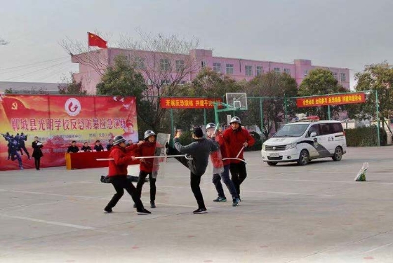 為切實(shí)做好“平安校園”建設(shè)工作,進(jìn)一步增強(qiáng)全縣師生對(duì)突發(fā)暴恐事件的防范意識(shí),提升在面對(duì)暴恐事件時(shí)自護(hù)自救及有效逃生避險(xiǎn)能力,最大限度減少因突發(fā)暴恐事件對(duì)師生造成的傷害,提高學(xué)校安全保衛(wèi)應(yīng)急處置和管理水平,12月20日上午,鄲城縣反恐辦組織相關(guān)單位在光明中學(xué)開展防暴恐知識(shí)培訓(xùn)和演練。