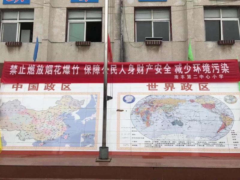 “……從現(xiàn)在做起,從你我做起,告別煙花爆竹,養(yǎng)成低碳、綠色、文明、健康的生活方式?!?月2日早上,新年開學(xué)第一天。鄲城縣吳臺(tái)鎮(zhèn)初級(jí)中學(xué)舉行升旗儀式,利用國(guó)旗下講話向全校師生宣傳禁止燃放煙花爆竹。